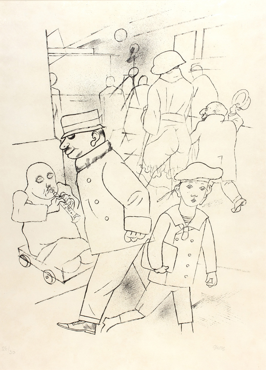 GEORGE GROSZ Straßenecke, 1922 Litografia, es. 26/30, 55 x 40 cm Firma in basso a destra: Grosz Tiratura in basso a sinistra