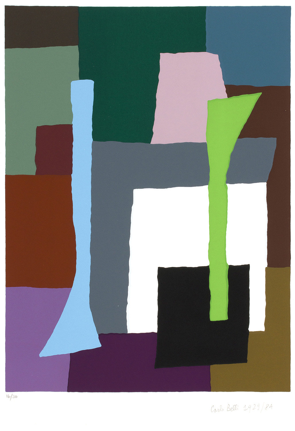 CARLO BELLI Senza titolo, 1929/84 Litografia, es. 16/20, 38 x 28,2 cm lastra, 49,5 x 34,5 cm foglio Firma e data in basso a destra: Carlo Belli 1929/84 Tiratura in basso a sinistra