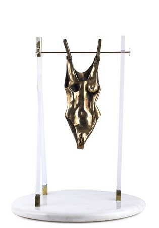 ENZO CARNEBIANCA La pelle, 1992 Bronzo, plexiglass e marmo, 53.5 x 43 x 43 cm...