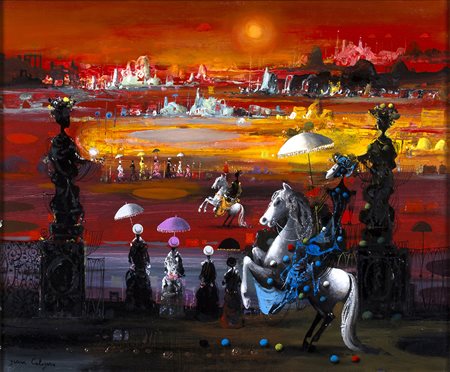 JEAN CALOGERO Fantasia Olio e smalti su masonite, 46 x 55 cm Firma in basso a sinistra: Jean Calogero Timbro al retro Archivio Jean Calogero