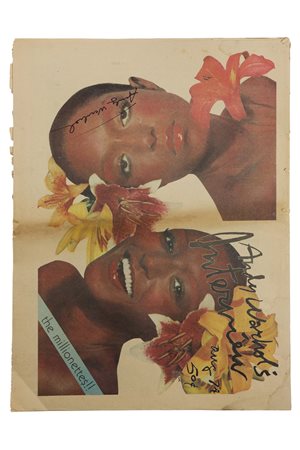 ANDY WARHOL Interview - Magazine, Agosto 1974 Offset a colori su carta 38,5 x 29,5 cm Firma su cover: Andy Warhol L’immagine di Richard Bernstein ritrae l’icona della moda Billie Blair Editore Interview Enterprises, Inc, New York La rivista Interview si occupa di attualità, spettacolo e dello star system. Fondata da Andy Warhol nel 1969 per promuovere il cinema underground e le varie attività della Factory. Sul progetto Richard Bernstein collabora con l’artista e per quasi vent’anni realizza le copertine della rivista che ancora oggi è un punto di riferimento per gli amanti del glamour e rappresenta un vero e proprio oggetto di culto per i collezionisti. La famosa Modella Billie Blair in copertina ha lavorato con nomi di rilevanza internazionale come Yves Saint Laurent e Calvin Klein, aprendo la strada ad altre modelle afro-americane come Naomi Campbell e Iman