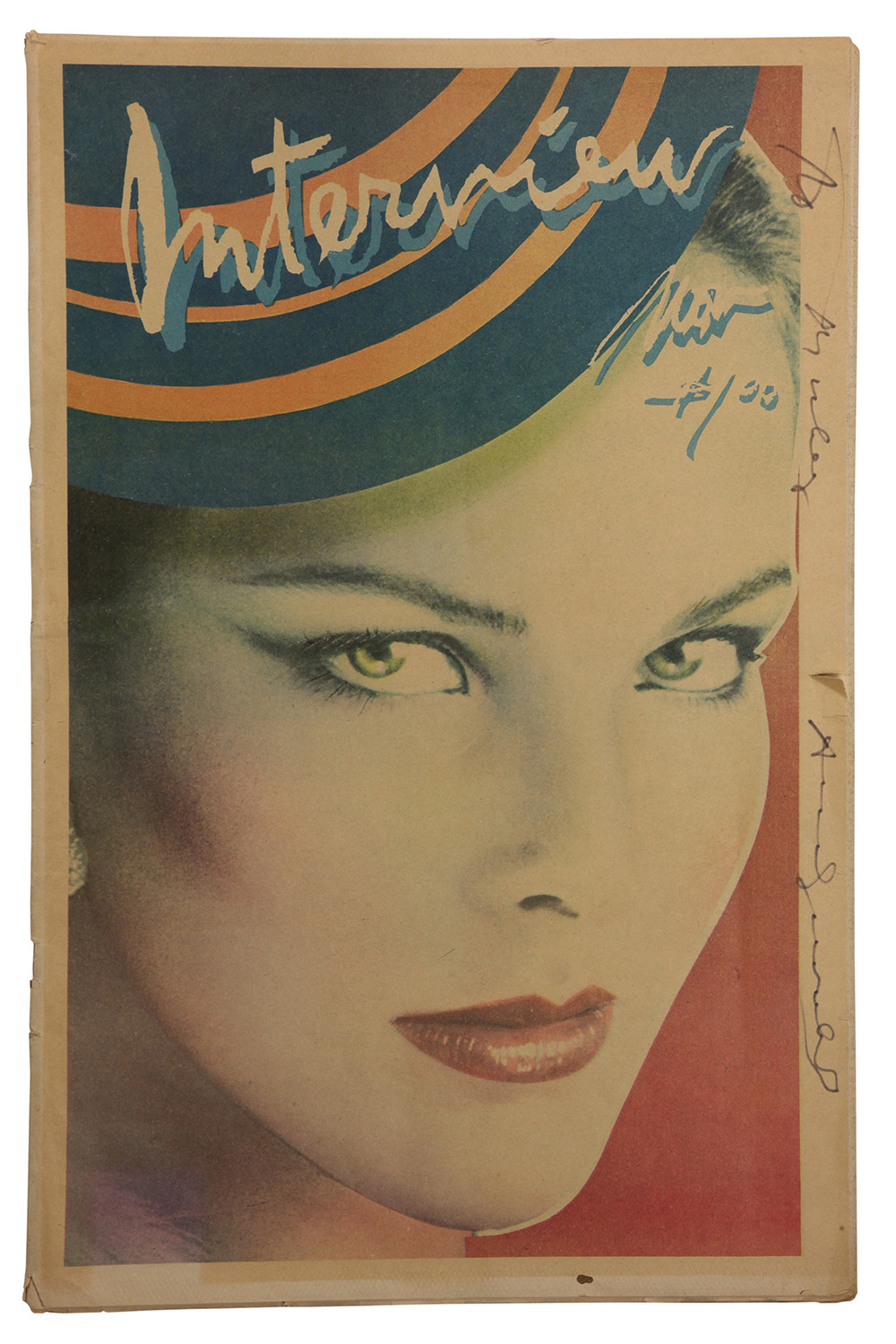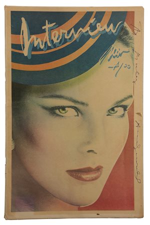ANDY WARHOL Interview - Magazine, Novembre 1978 Offset a colori su carta 43 x 28,7 cm Firma e dedica su cover: Andy Warhol L'immagine di Barry McKinley ritrae Carole Bouquet Disegnata da Richard Bernstein, fotografia di Barry McKinley Editore Interview Enterprises,Inc, New York La rivista Interview si occupa di attualità, spettacolo e dello star system. Fondata da Andy Warhol nel 1969 per promuovere il cinema underground e le varie attività della Factory. Sul progetto Richard Bernstein collabora con l’artista e per quasi vent’anni realizza le copertine della rivista che ancora oggi è un punto di riferimento per gli amanti del glamour e rappresenta un vero e proprio oggetto di culto per i collezionisti. La foto di copertina e l'articolo principale riguardano Carole Bouquet