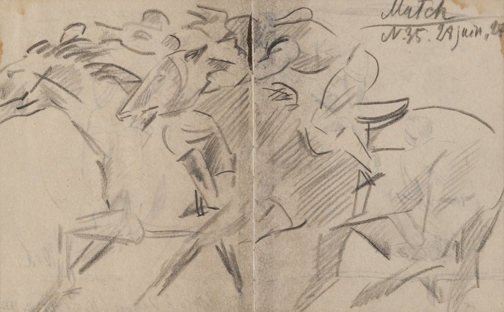 ARTISTA FRANCESCE XX SECOLO Match - Corsa di cavalli, 1927 Drogo à Vannes - Match, 1972 Carboncino su carta double faces, cm. 13,5 x 21,5