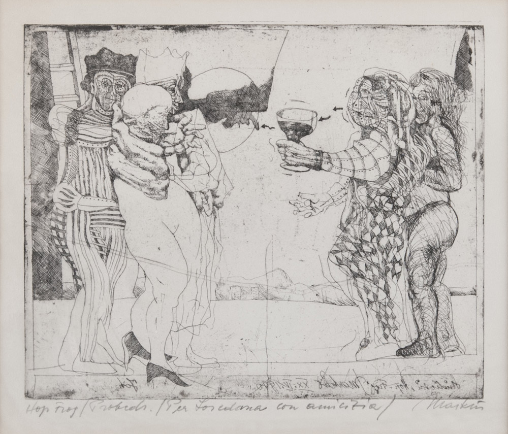 MARKUS VALLAZZA (Ortisei 1936) Hop Frog, 1970 Litografia, ex. P.A. Misure della lastra, cm. 19,5 x 24 Firma in basso a destra