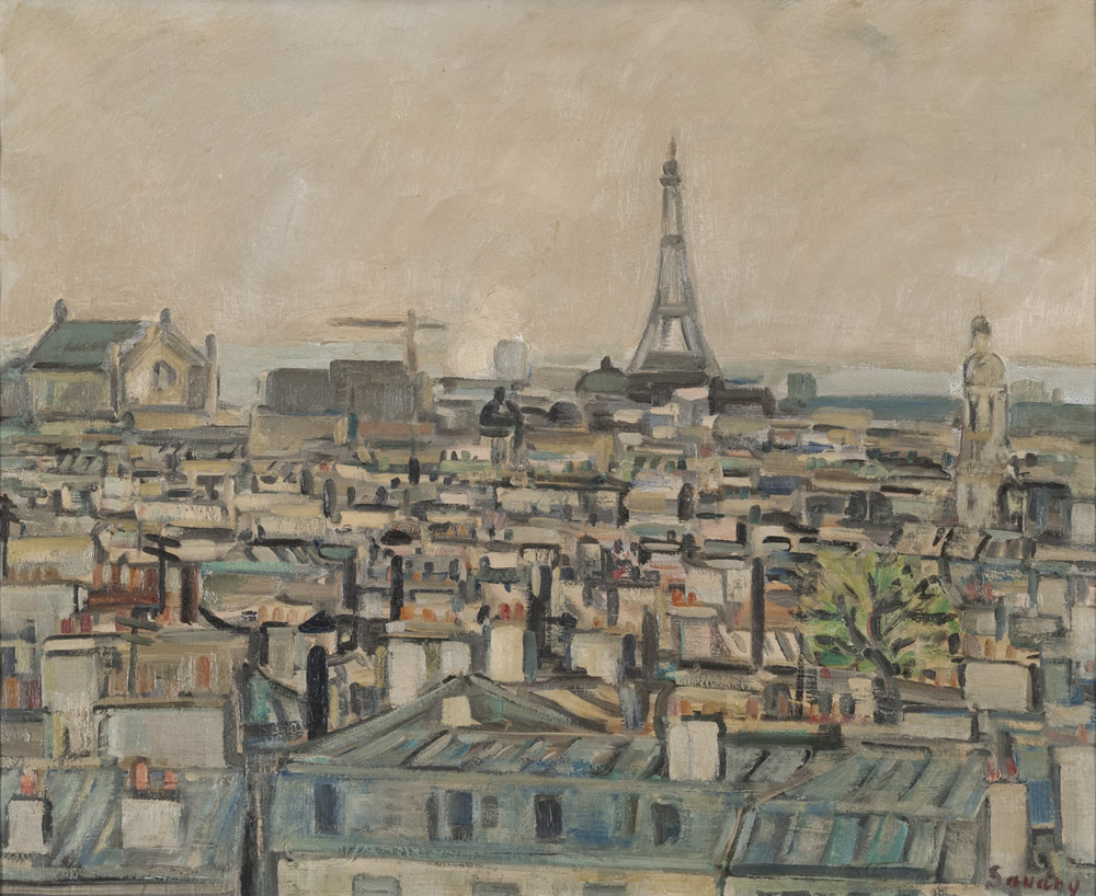 ROBERT SAVARY (Parigi 1920 - 2000) L'opera e la tour Eiffel de toits de Paris...