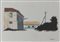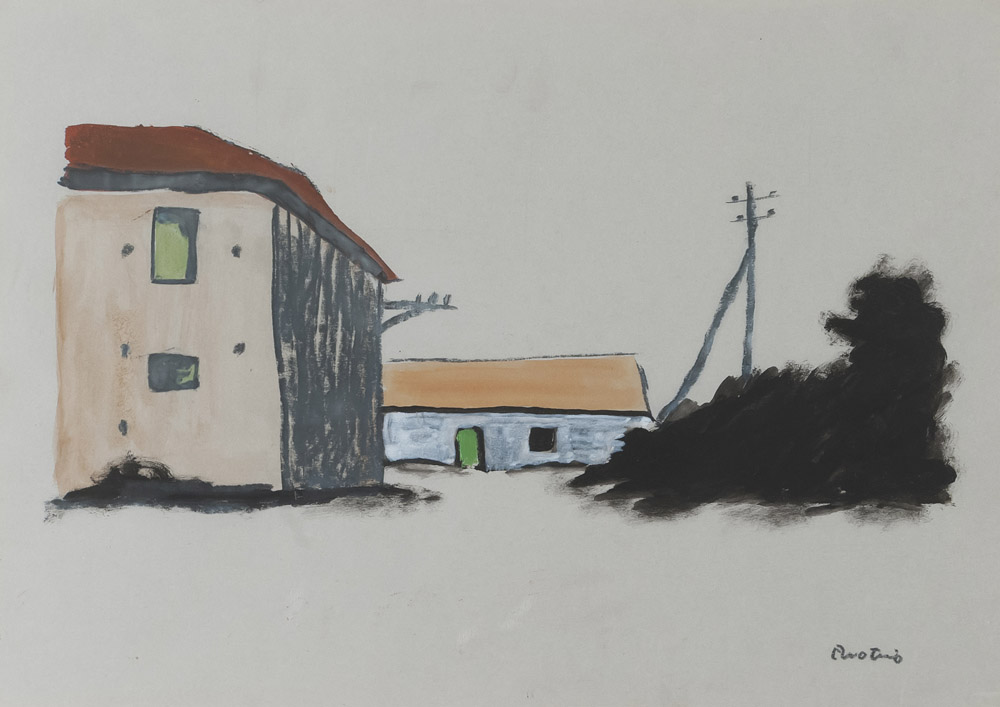 ENOTRIO PUGLIESE (Buenos Aires 1920 - Pizzo 1989) Paesaggio urbano Tecnica mista su carta, cm 40 x 50 Firma in basso a destra