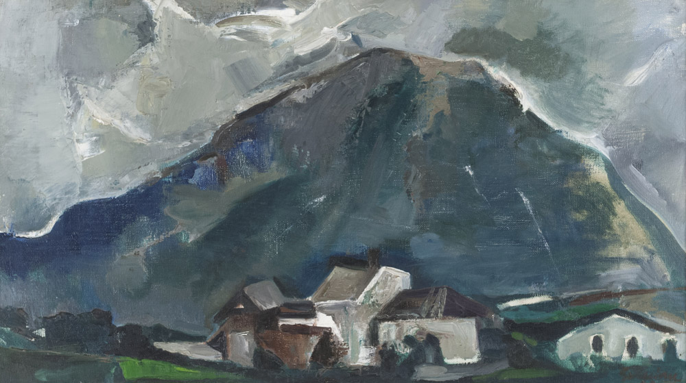 PIERO GUCCIONE (Scicli 1935) Paesaggio montano Olio su tela, cm. 40 x 70 Firma in basso a destra