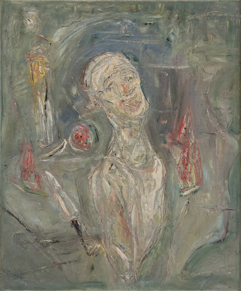 GIOVANNI STRADONE (Roma 1911 - 1981) Cocomeraio, 1947 Olio su tela, cm. 57 x 47 Firma, titolo e data al retro PROVENIENZA Collezione Daniela Stradone, Roma ‘… nella pittura di Giovanni Stradone possiamo ritrovare molto della pittura astratta…’ Hirosi Nikawa 1952 ‘La figura di Giovanni Stradone è semplice e complessa ad un tempo. A prima vista la sua pittura potrebbe infatti catalogarsi tra quelle espressioni artistiche che chiudono e concludono il senso emotivo della rappresentazione in un clima di sapore romantico. Il movimento delle immagini, rese con un disegno contorto e aggrovigliato e con ispessite stesure di materie sembrerebbe indicarci la presenza, spesso contrastante, di stati d’animo alternati: dal tragico al grottesco. Infine una serie di impasti cromatici, di solito varianti dai grigio-lavagna ai verdi impalpabili ai gialli acquitrinosi, contribuiscono a dare la sensazione di un mondo disfatto, ove ironia e dolore sono i contenuti fondamentali di ogni soluzione formale. A ben osservare tuttavia ci si accorge come l’opera dello Stradone non si esaurisca in così brevi annotazioni. Vi è infatti tutto un sottofondo per così dire ‘misterioso’, che si riversa ed inspiegabilmente affiora dai suoi dipinti. Quando si crede di aver ‘afferrato’ tutte le caratteristiche del pittore, qualcosa di essenziale ci sfugge di mano. Un ‘quid’ indefinibile si riaffaccia alla nostra memoria visiva, invitandoci ad un ripensamento su tutto ciò che al primo contatto ci è parso facilmente decifrabile.’ Giorgio De Chirico 1964 ‘Una costante della pittura di Stradone è certamente la riduzione dell’immagine al suo limite di presenza, si potrebbe dire di figurabilità. Ciò avviene già all’inizio degli anni Quaranta, per costituirsi progressivamente nei modi di quello stile rapidamente ellittico che tutto conoscono e che gli è tipico ed è personalissimo. E naturalmente nasce dalla congiuntura dell’espressionismo esistenziale romano, configuratosi sulle premesse scipionesche e mafaiane fra lo scorcio degli anni Trenta e l’esordio appunto dei Quaranta; e della quale congiuntura Stradone è stato, com’è noto, un protagonista. (…) Soltanto con Sironi Stradone condivide un certo scandaglio introspettivo, che tuttavia Sironi volge a condizione mistica mentre per Stradone si definisce in chiave intimistica.’ Enrico Crispolti 1973