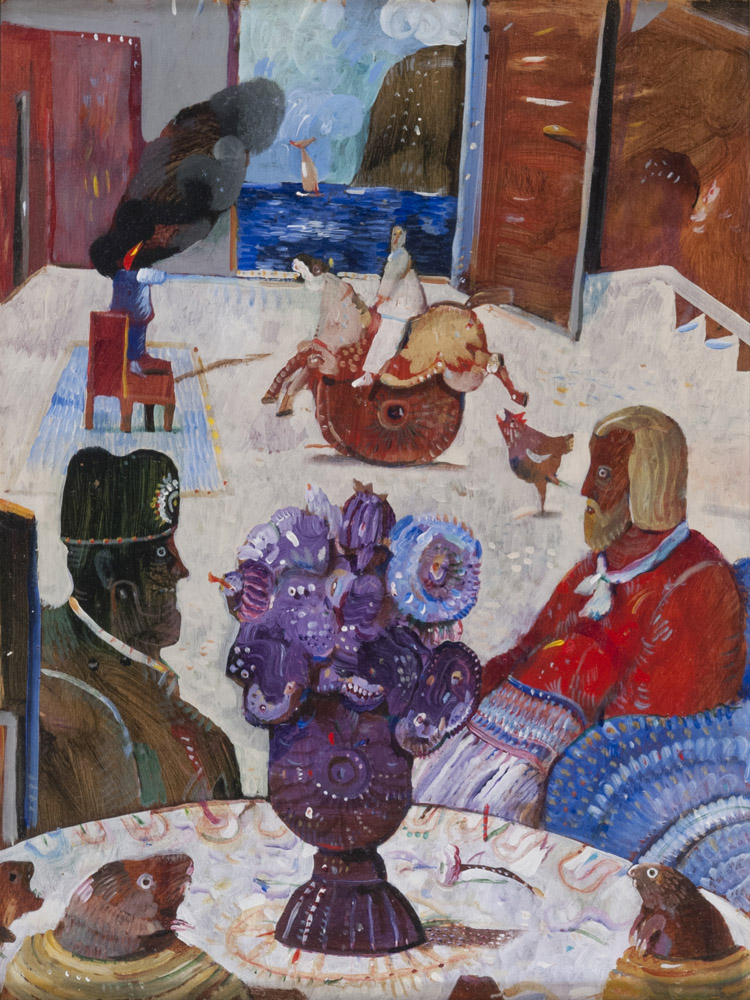 ANTONIO POSSENTI (Lucca 1933) Uno stanzone a Caprera Olio su tavoletta, cm. 40 x 30 Firma e titolo al retro