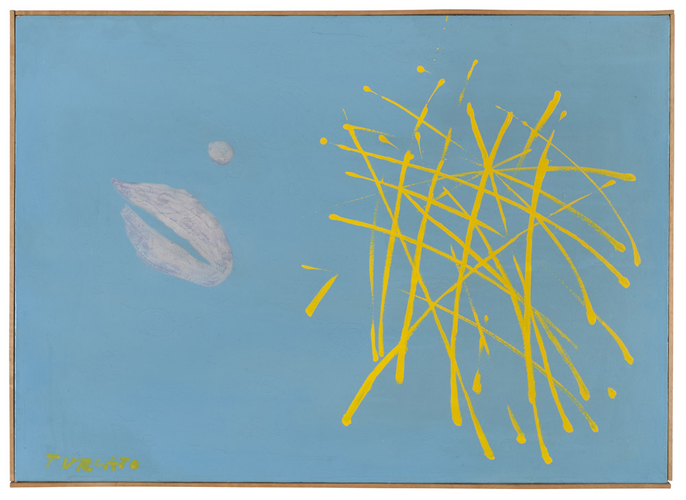 GIULIO TURCATO (Mantova 1912 - Roma 1995) Senza titolo, 1963 Olio su tela, cm. 50 x 70 Firma in basso a sinistra Timbri al retro PROVENIENZA Galleria Anna D'Ascanio, Roma Opera in via di archiviazione presso l'Archivio Giulio Turcato
