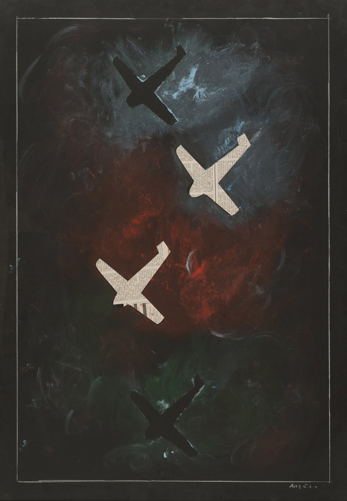 FRANCO ANGELI (Roma 1935 - 1988) Senza titolo, anni '80 Tecnica mista e collage su cartoncino, cm. 100 x 70 Firma in basso a destra Opera in corso di archiviazione presso l'Archivio Franco Angeli, Roma