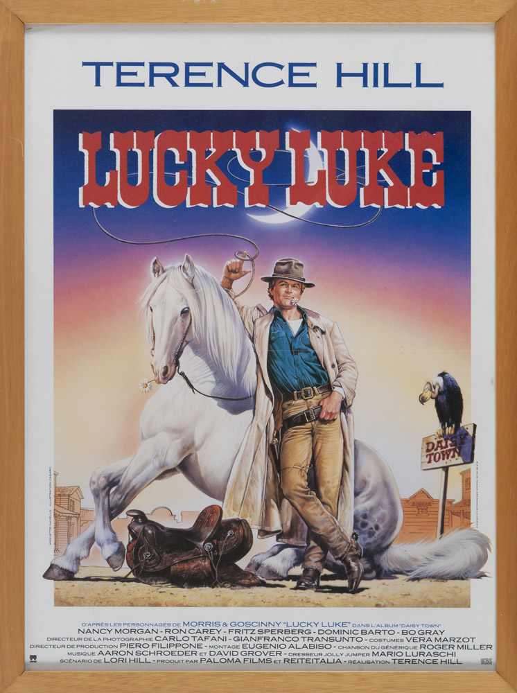 RENATO CASARO (Treviso 1935) LUKY LUKE Locandina del film del 1991 diretto da Terence Hill. Nasce come episodio pilota della omonima serie televisiva. Stampa, cm. 51 x 37 PROVENIENZA Collezione Società Adriana Chiesa Enterprises, Roma