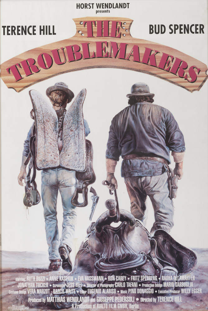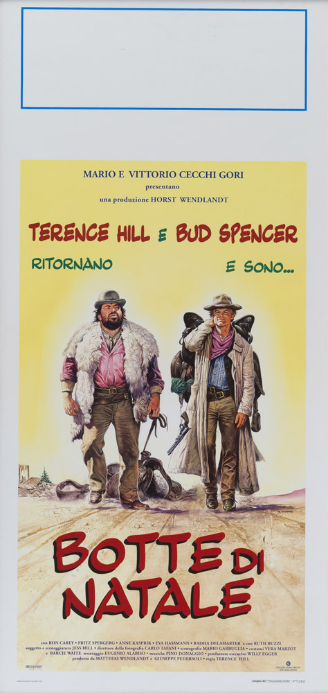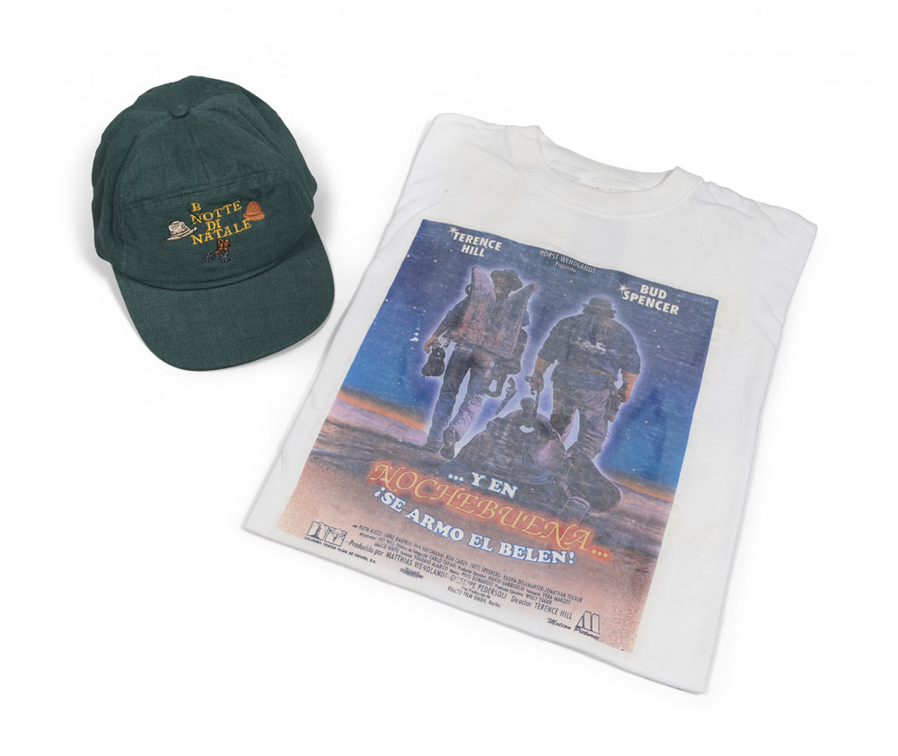 BOTTE DI NATALE - THE TROUBLEMAKERS Due locandine, maglietta e berretto con visiera del film comico-western del 1994 diretto da Terence Hill. È l'ultimo dei 16 film interpretati dalla coppia Bud Spencer e Terence Hill Stampa, cm. 70 x 33 Stampa su forex, cm. 70 x 50 PROVENIENZA Collezione Società Adriana Chiesa Enterprises, Roma