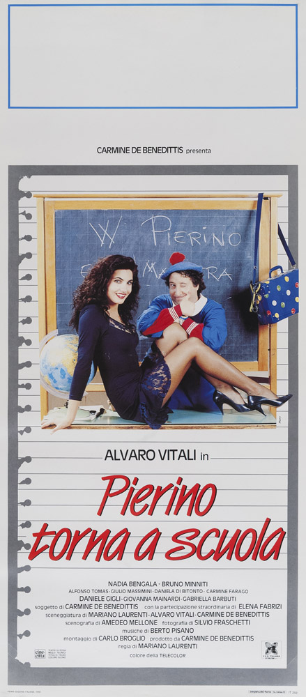 CINQUE LOCANDINE DI FILM CON ALVARO VITALI tra cui 'Pierino torna a scuola' diretto da Mariano Laurenti del 1990 e 'Gianburrasca' diretto da Pier Francesco Pingitore del 1982 Stampa, cm. 70 x 33 PROVENIENZA Collezione Società Adriana Chiesa Enterprises, Roma