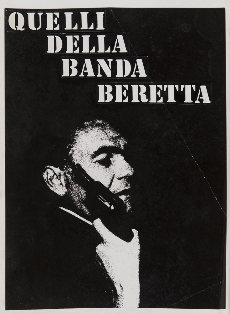 QUELLI DELLA BANDA BERETTA Bozzetto della locandina del film del 1972 diretto da Edouard Molinaro con Daniel Cauchy, Bulle Ogier, Gilles Segal, Gérard Darrieu Collage su carta fotografica, cm. 40,5 x 31 PROVENIENZA Collezione Società Adriana Chiesa Enterprises, Roma