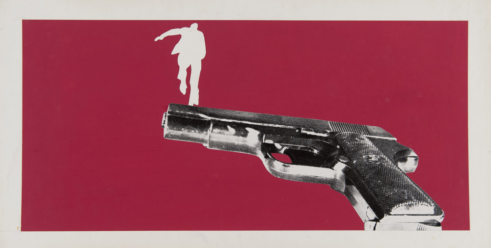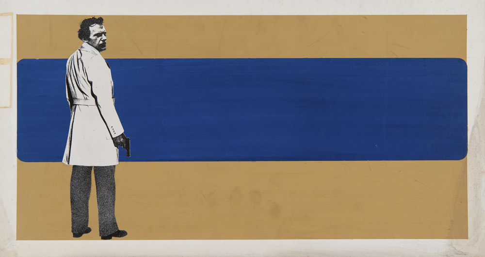 COPPIA DI BOZZETTI PER IL MANIFESTO DEL FILM SOSPETTO D'OMICIDIO con Jean-Louis Trintignant Tecnica mista e collage, cm. 34 x 63 e cm. 36 x 68 Etichette al retro PROVENIENZA Collezione Società Adriana Chiesa Enterprises, Roma