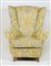 Poltrona ad orecchie rivestita da stoffa floreale.