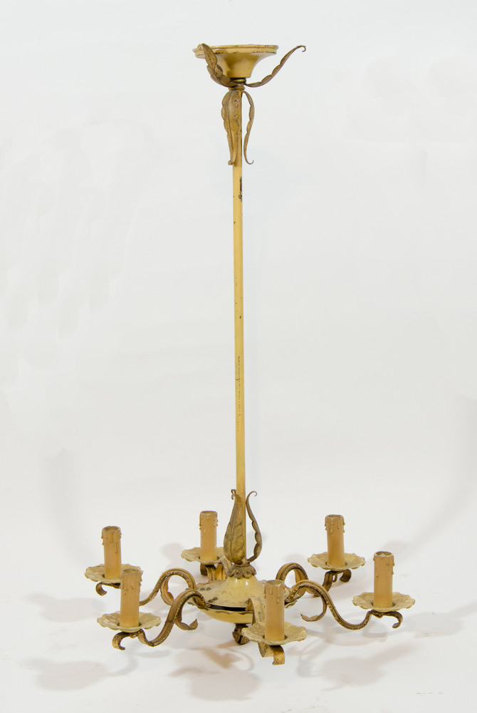 Lampadario in ferro dorato a 6 luci. H. cm. 85.