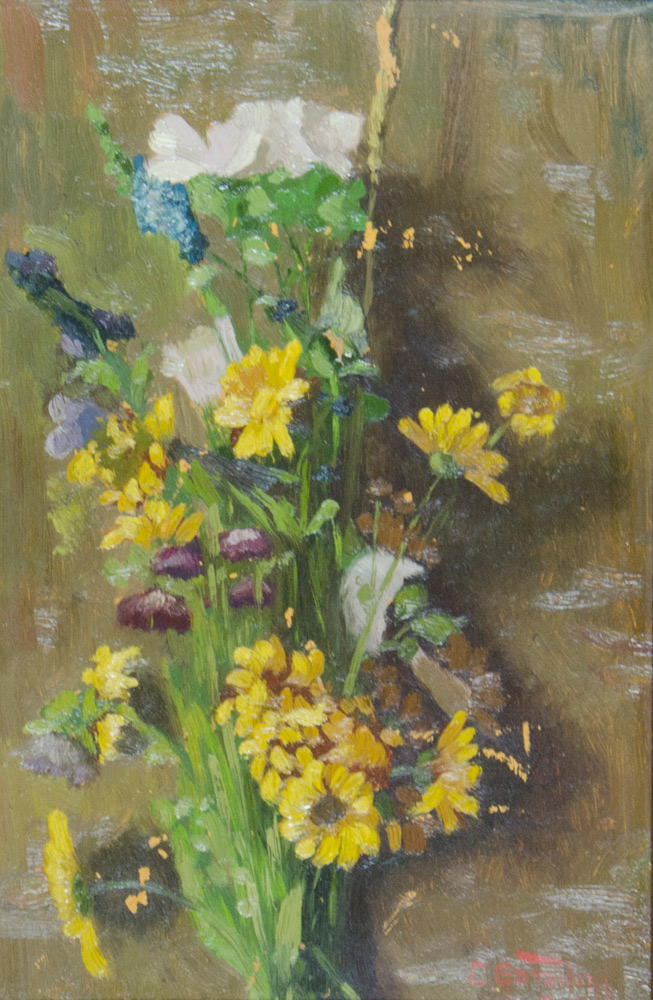 Ciro Garzolini Trieste 1883-1972 "Mazzo di fiori" cm. 30x20 - olio su compensato Firmato b. a d.