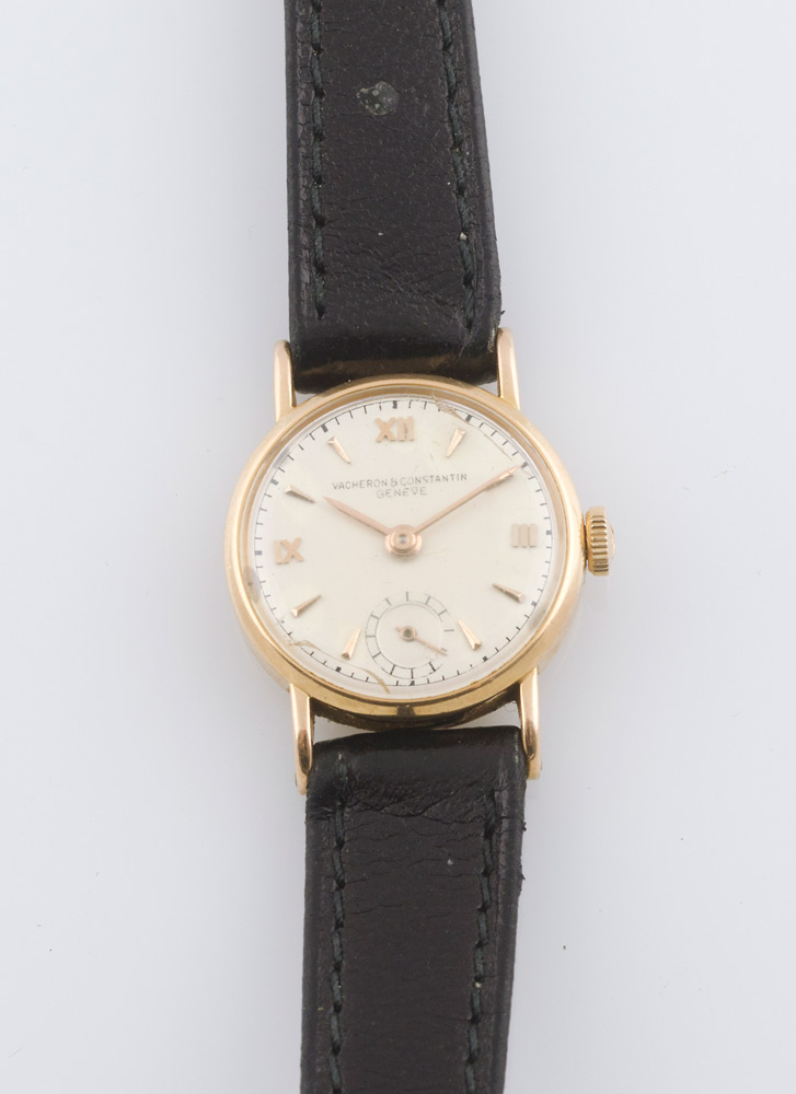 Vacheron & Constantin: orologio da polso da donna con cassa rotonda in oro giallo e anse di forma, secondi al sei. Diam. mm. 20.