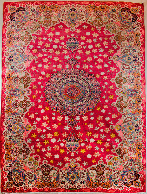 Tappeto Kirman firmato con bandiera iraniana, cm. 267x407.