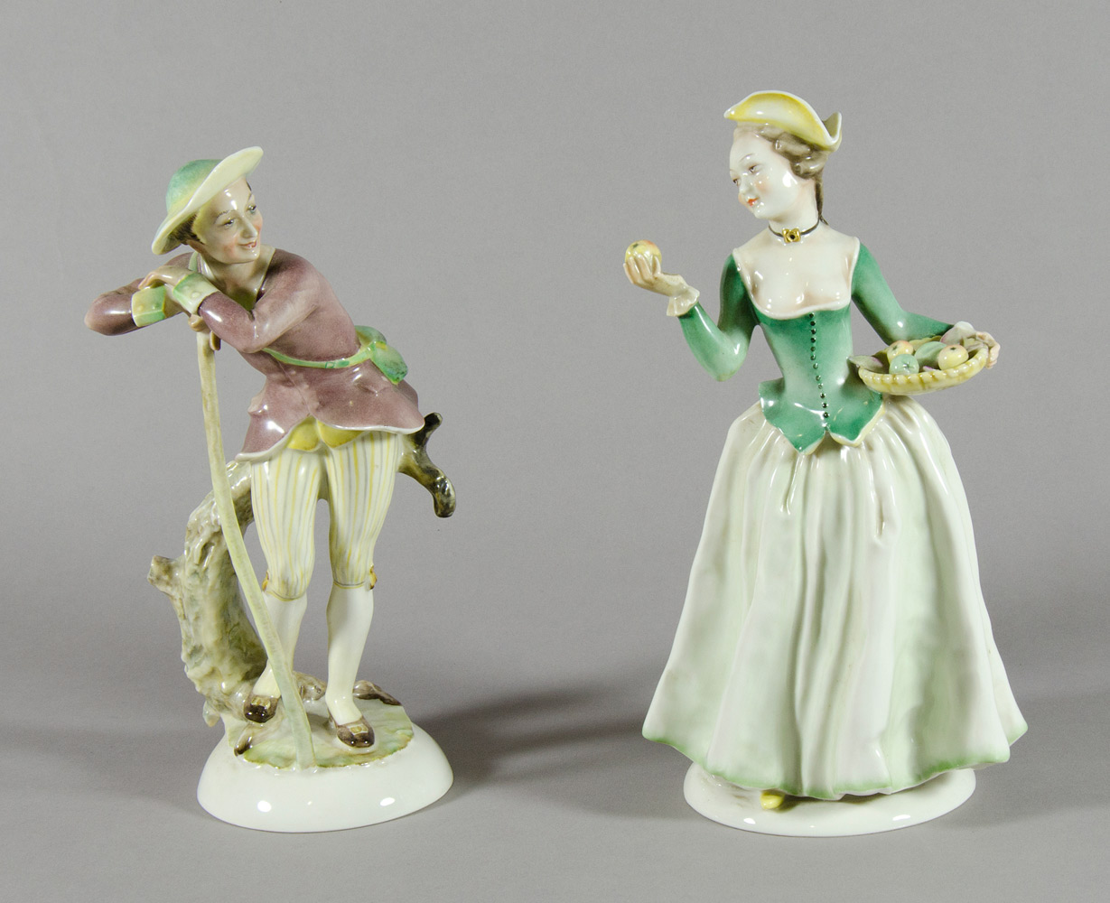 Hutschenreuter: lotto di 2 statuine in porcellana policroma. H. max cm. 25.