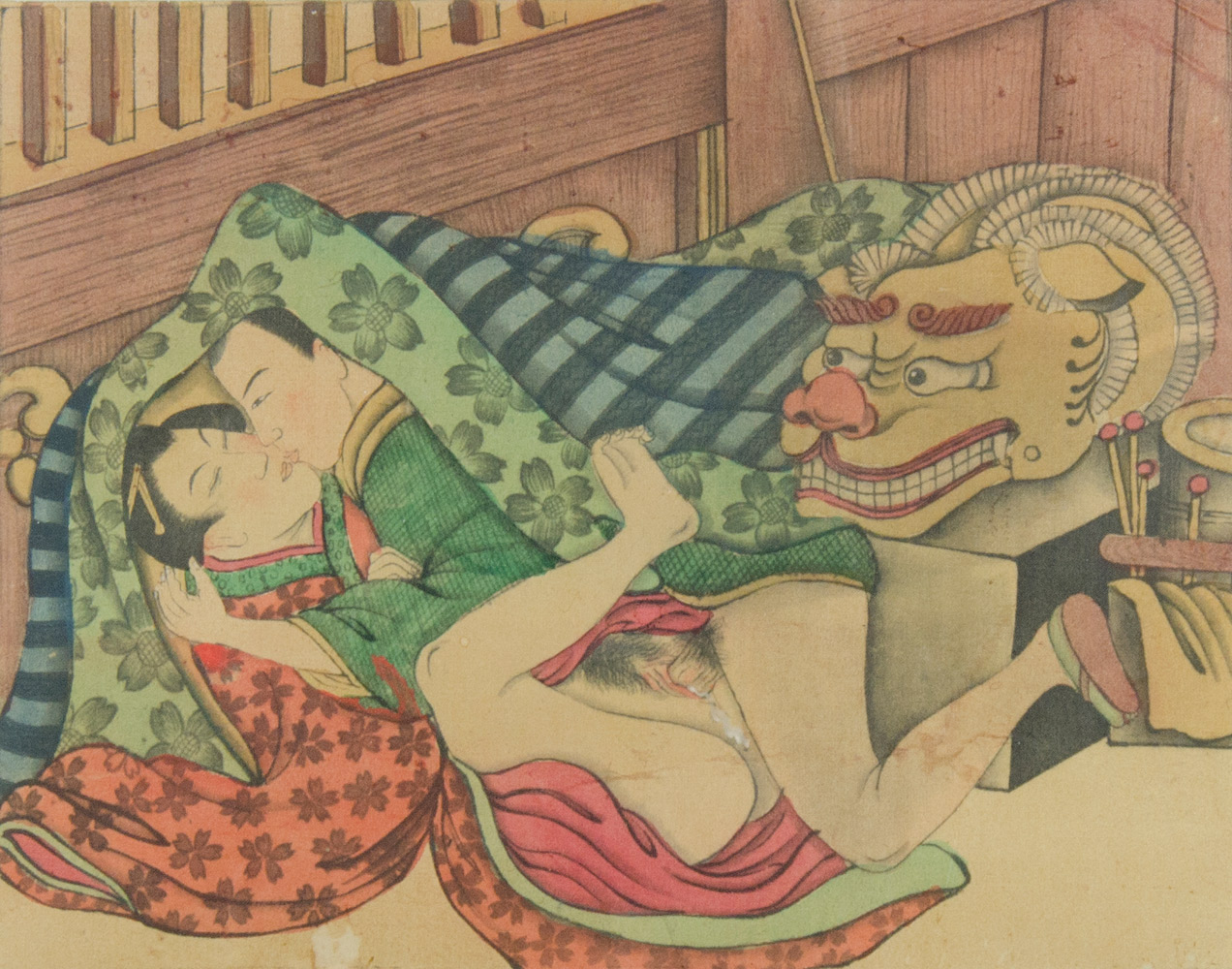 Lotto 108 | Lotto di 4 stampe giapponesi acquerellate a mano raffiguranti scene erotiche,...