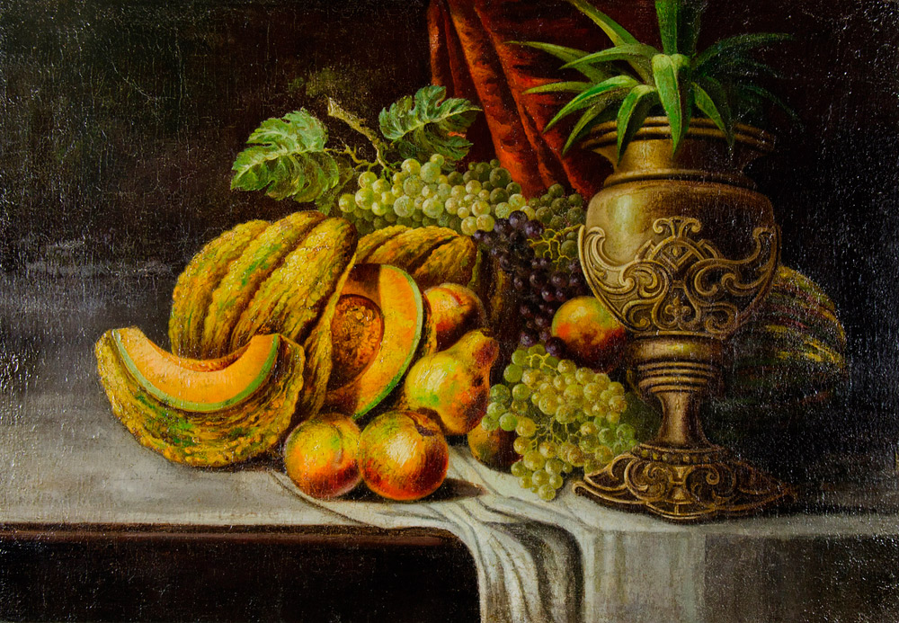 Pittore del XIX secolo "Natura morta con frutta e vaso" cm. 70x100 - olio su tela foderata