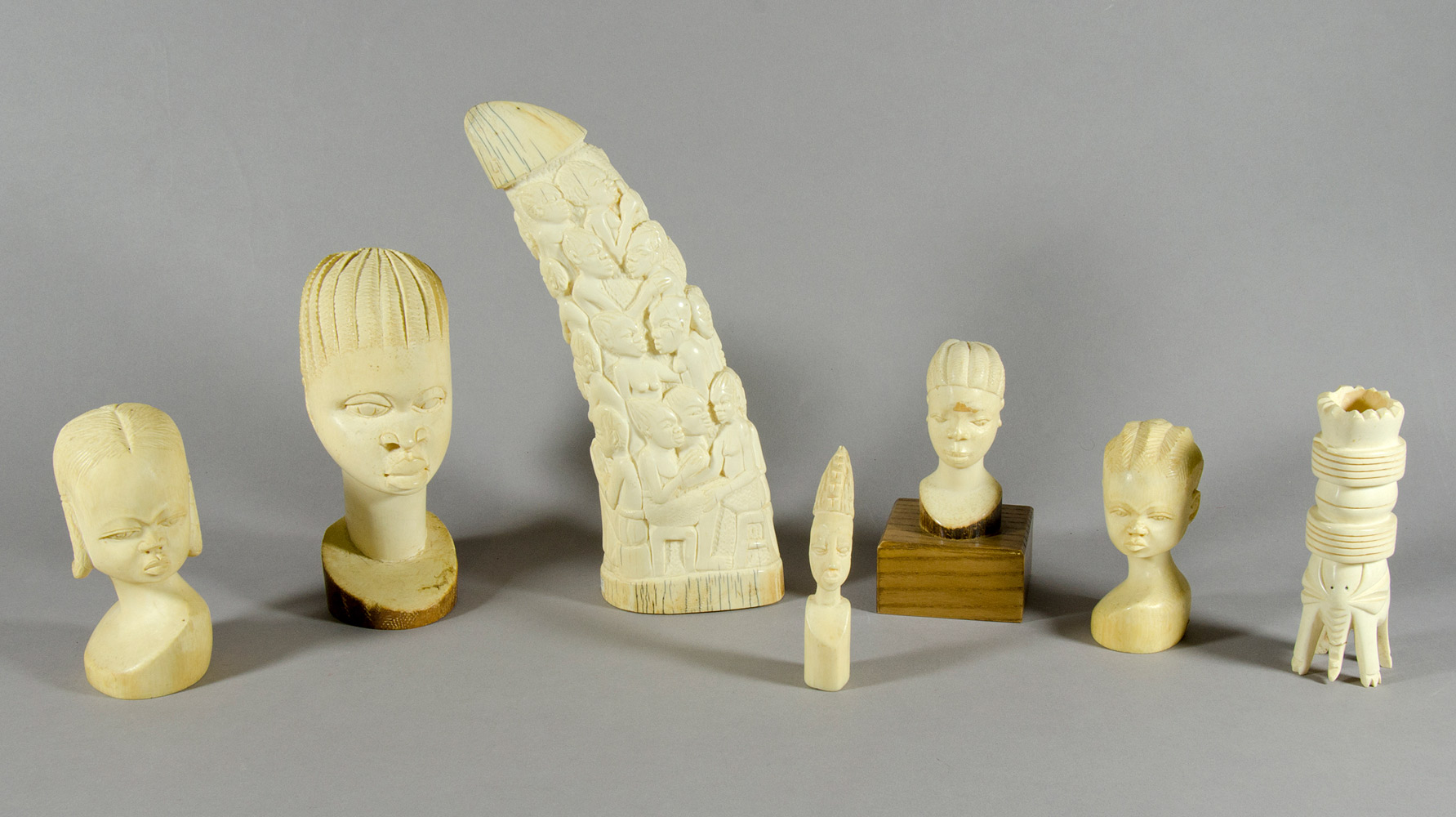 Lotto di 7 figure africane in avorio. Misure diverse.
