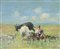 Pittore dell'800 "Caprette nel prato" cm. 38x45 - olio su tela