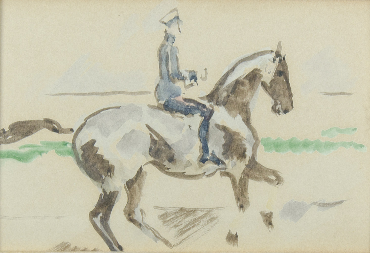 Pittore del '900 "A cavallo" cm. 17x25 - acquerello su carta