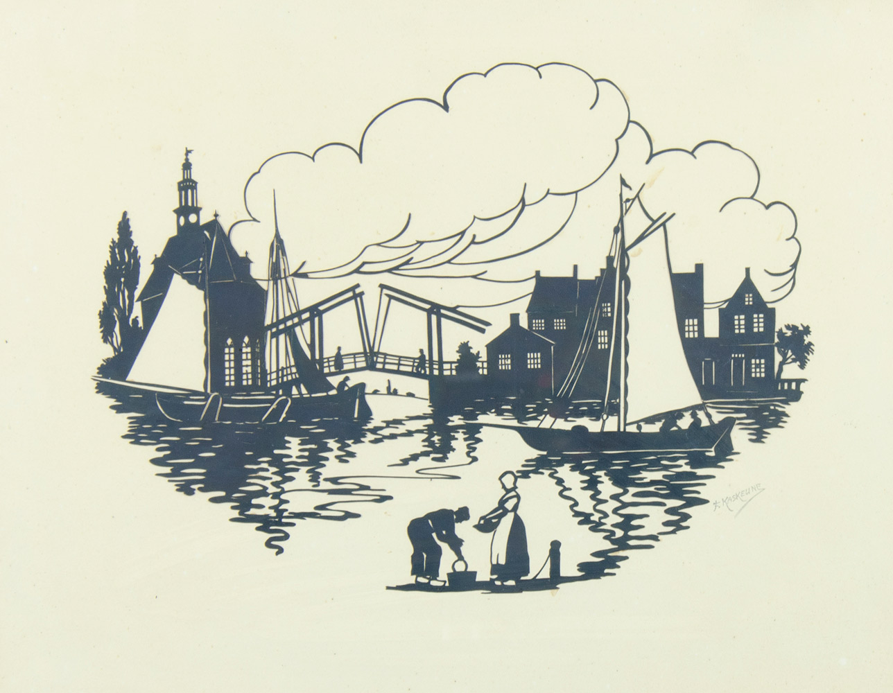 Friedrich Kaskeline 1863-1931 Lotto di 2 silhouettes incoriniciate e firmate,...