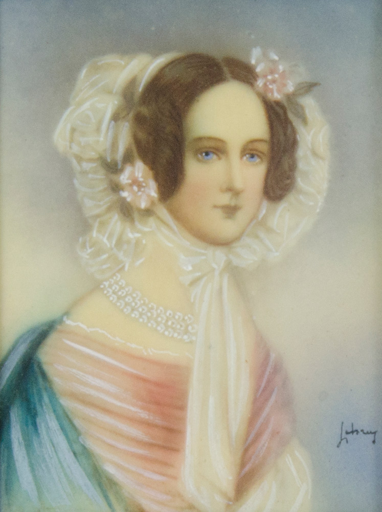 Lotto di 2 miniature dipinte raffiguranti gentildonne, entrambe firmate ed incorniciate.