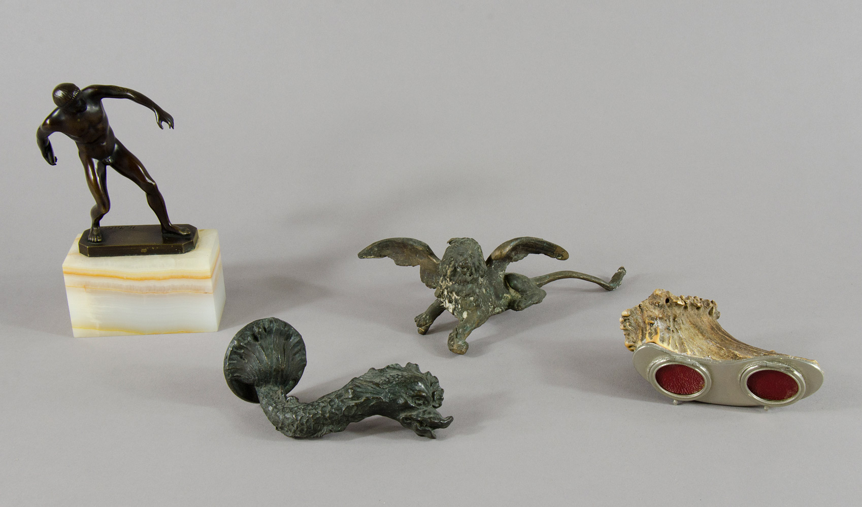 Lotto di 4 oggetti vari, alcuni in bronzo.