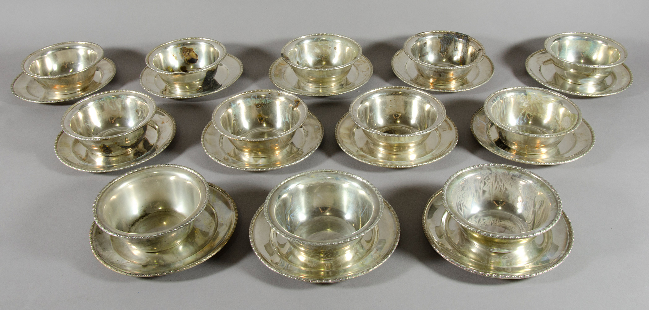 Lotto composto da 12 lavadita in argento con relativi piattini. gr. tot 2650.