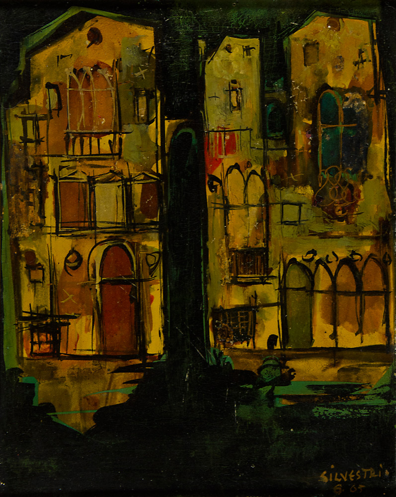 Lotto 176 | Giorgio Silvestri "Case a Venezia" cm. 30x24 - lacca su tavola Firmato b. a...