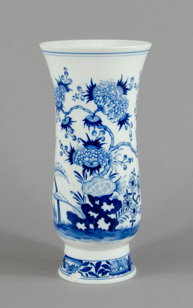 Meissen: vaso in porcellana bianca e blu decorato a motivi floreali. H. cm. 32. (difetto).