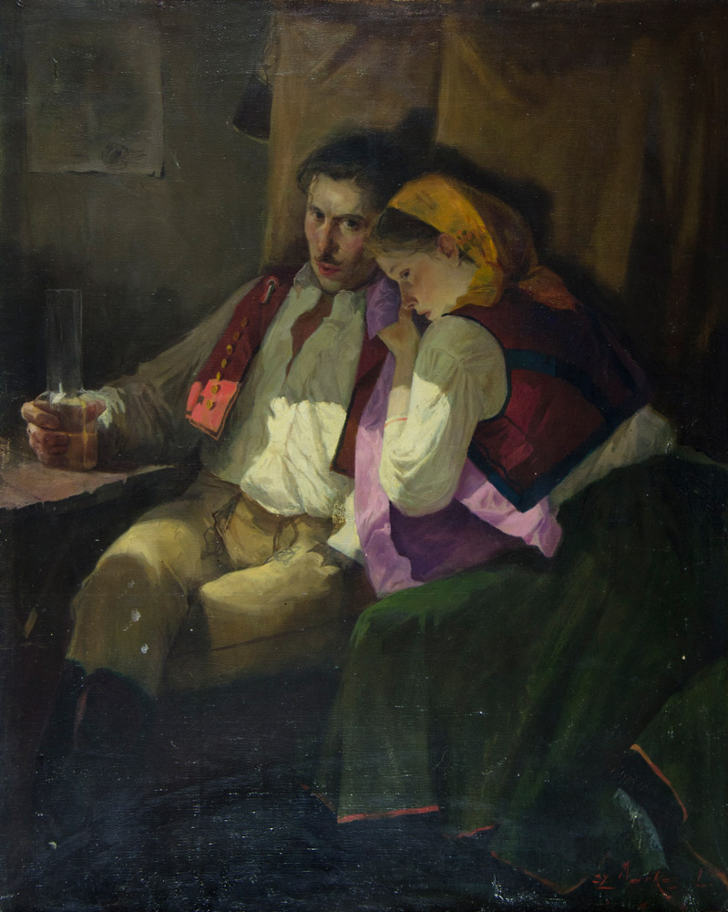 Lajos Markos 1917-1993 "Amici intimi" cm. 100x80 - olio su tela Firmato b. a d.
