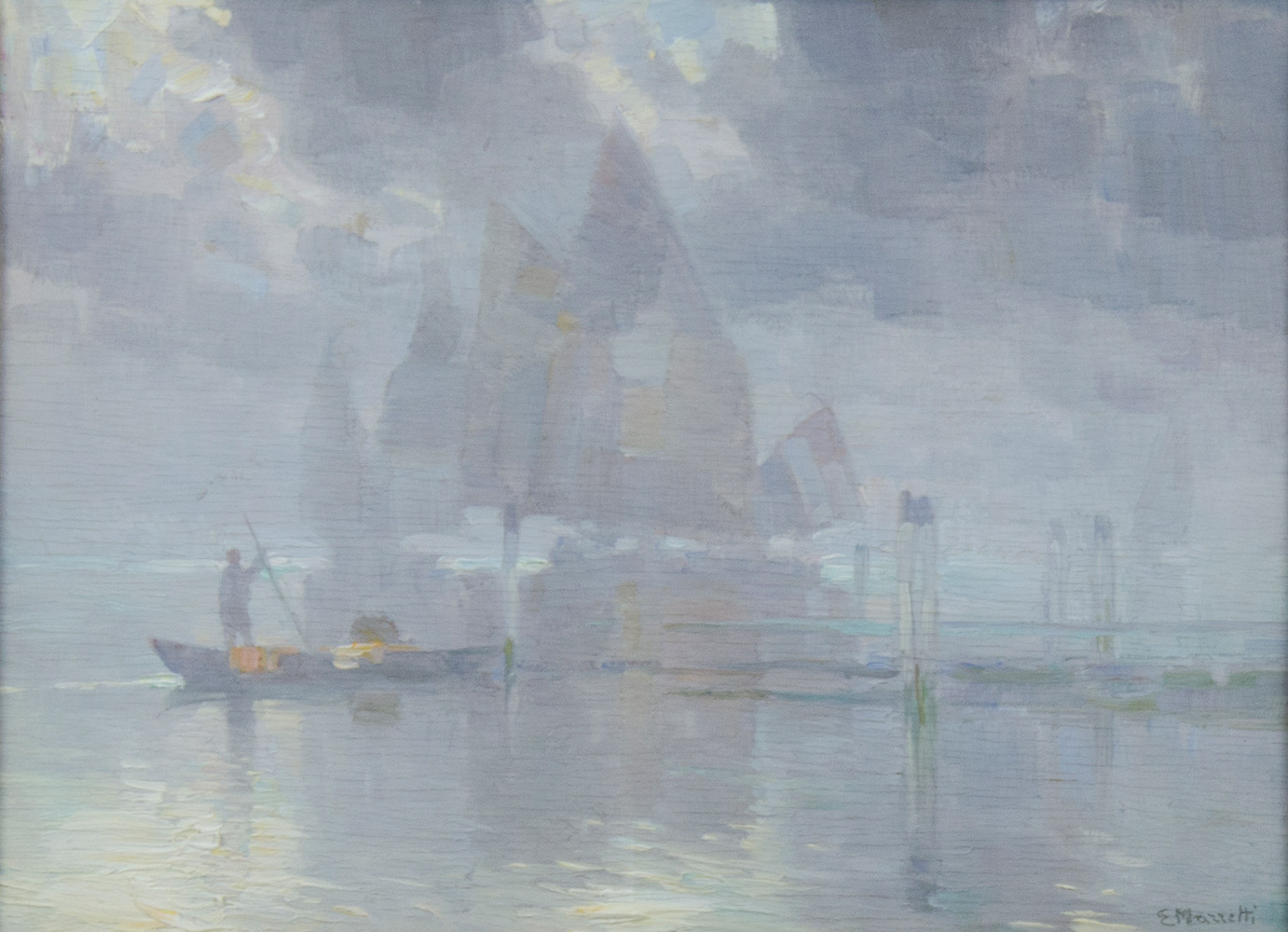 Lotto 266 | Emo Mazzetti 1870-1955 "Gondola in laguna" cm. 16x22 - olio su tavoletta...