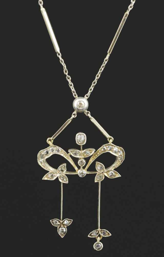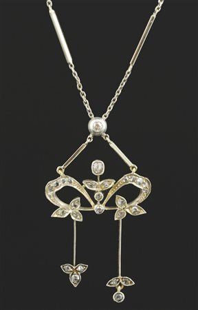 Girocollo in oro bianco Liberty con pendente forma floreale con diamanti