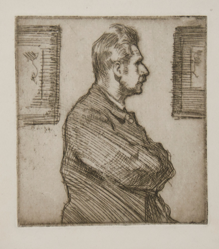 Carlo Sbisà Trieste 1899-1964 "Ritratto di profilo" cm. 14x12,5 - acquaforte