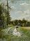 Pittore del XIX secolo "Ragazza con l'ombrellino" cm. 33x25 - olio su tela Firmato b. a s.