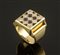Anello in oro giallo forma rettangolare con pavè di granati e diamanti taglio...