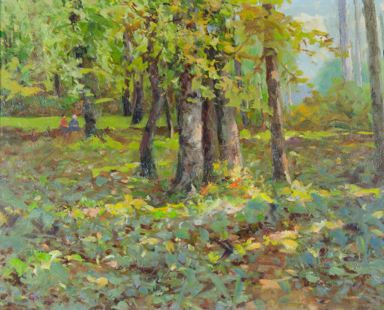 Lotto 334 | Ciro Garzolini Trieste 1883-1972 "Foglie nel bosco" cm. 40x50 - olio su...