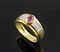Lotto 343 | Anello in oro giallo centrato da rubino ovale e ai lati oro bianco con...