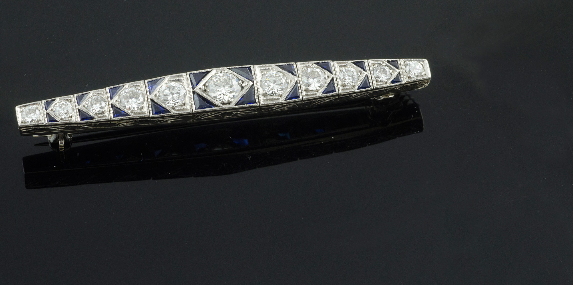 Spilla barretta in oro bianco con 11 diamanti taglio brillante in degrade per tot ca ct 1