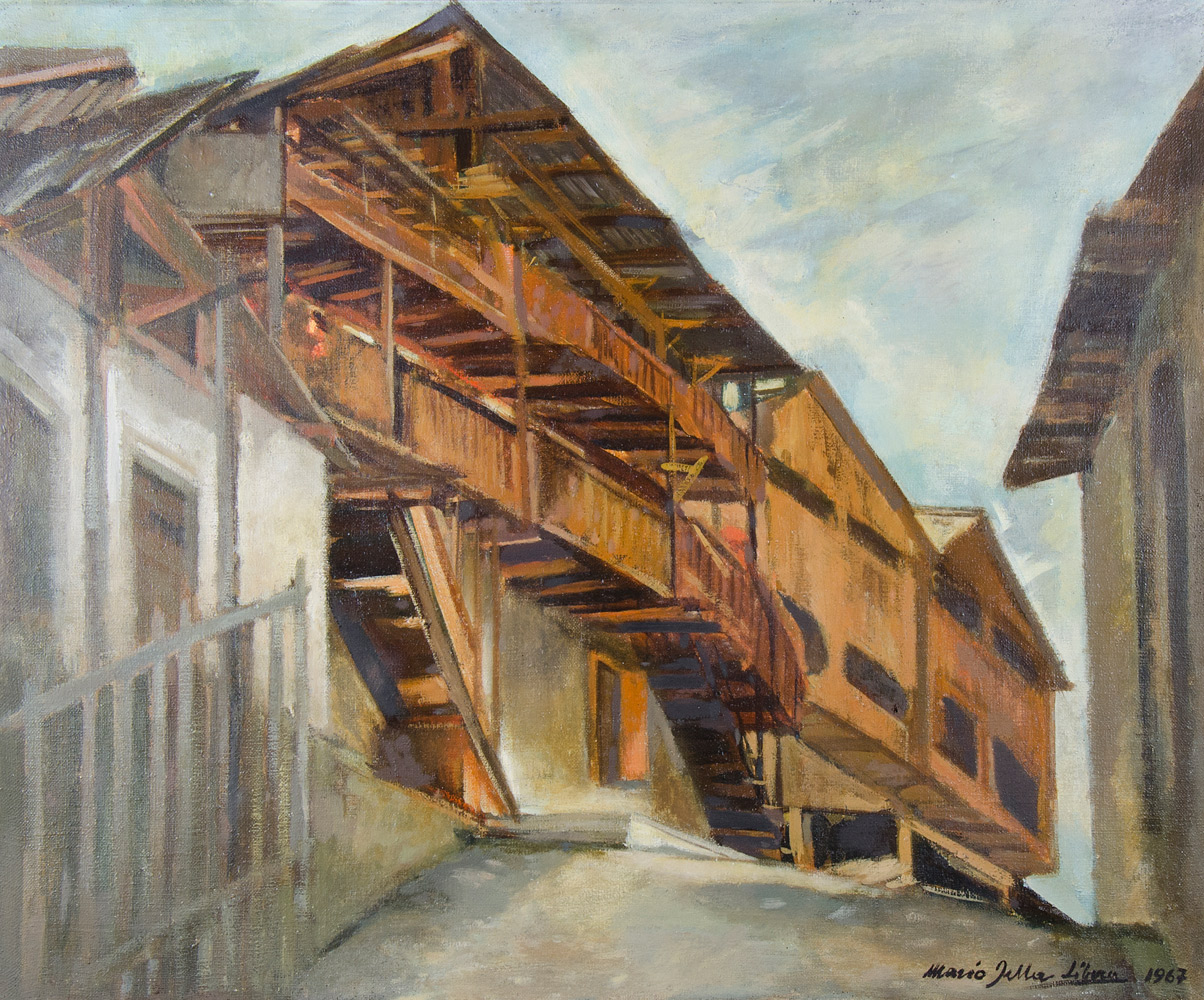 Mario Della Libera "Baita a Sauris" cm.75x90 - olio su tela Firmato b. a d. e datato 1967.