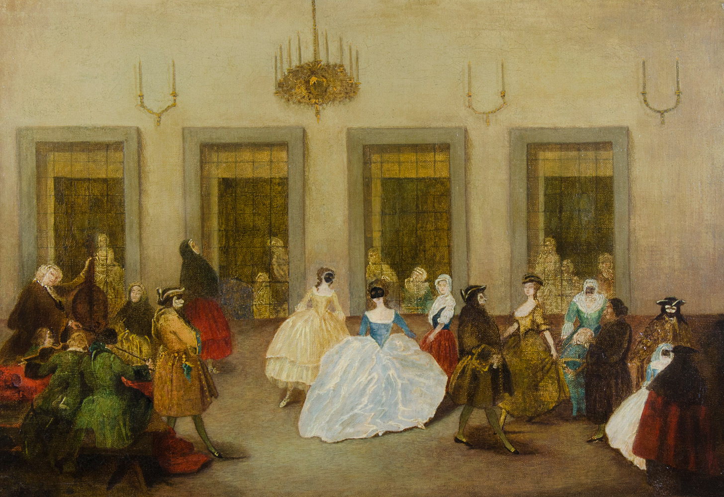 Seguace di Francesco Guardi "Maschere veneziane" cm. 49x69 - olio su tela foderata