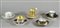 Lotto di 5 tazze con piattino in porcellana policroma.