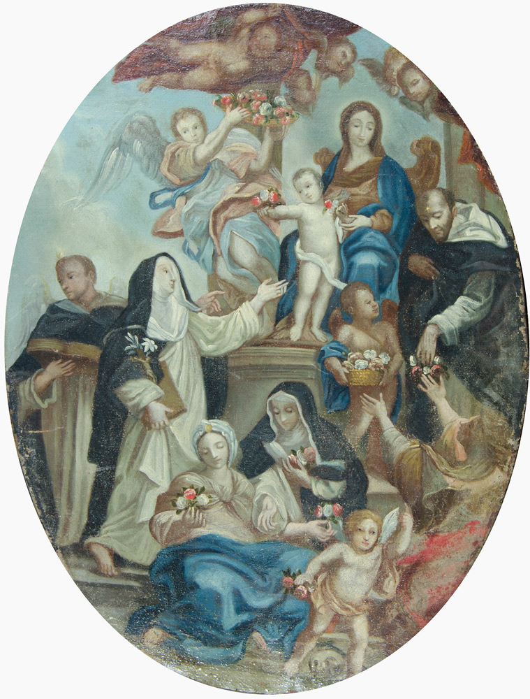 Maestro del XVII secolo "Scena sacra" cm. 58x44 - olio su tela foderata (ovale)
